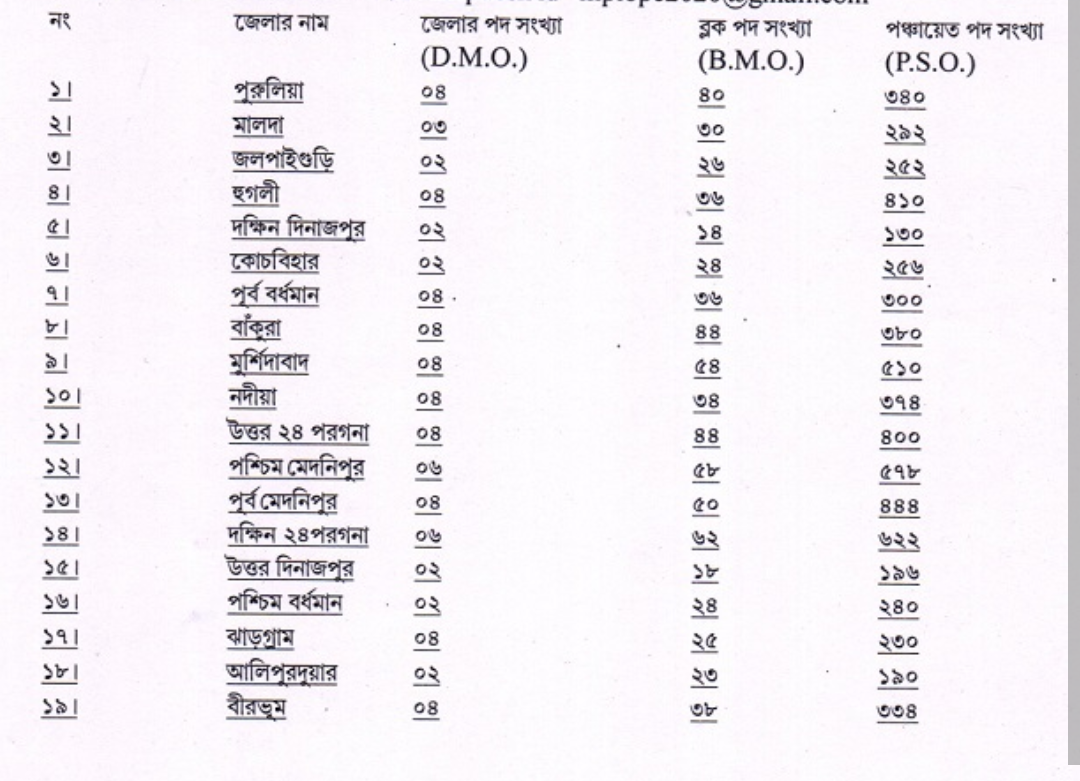 পদের নাম- 1) District Managing Operator (শূন্যপদ- ৭০), 2) Block Managing Operator (শূন্যপদ- ৬৮০), 3) Panchayat Selling Operator (শূন্যপদ- ৬৪৭৮).