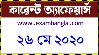 কারেন্ট অ্যাফেয়ার্স ২৬ মে, ২০২০ Daily Current Affairs 26 May 2020