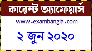 কারেন্ট অ্যাফেয়ার্স ২ জুন, ২০২০ Daily Current Affairs 2 June 2020