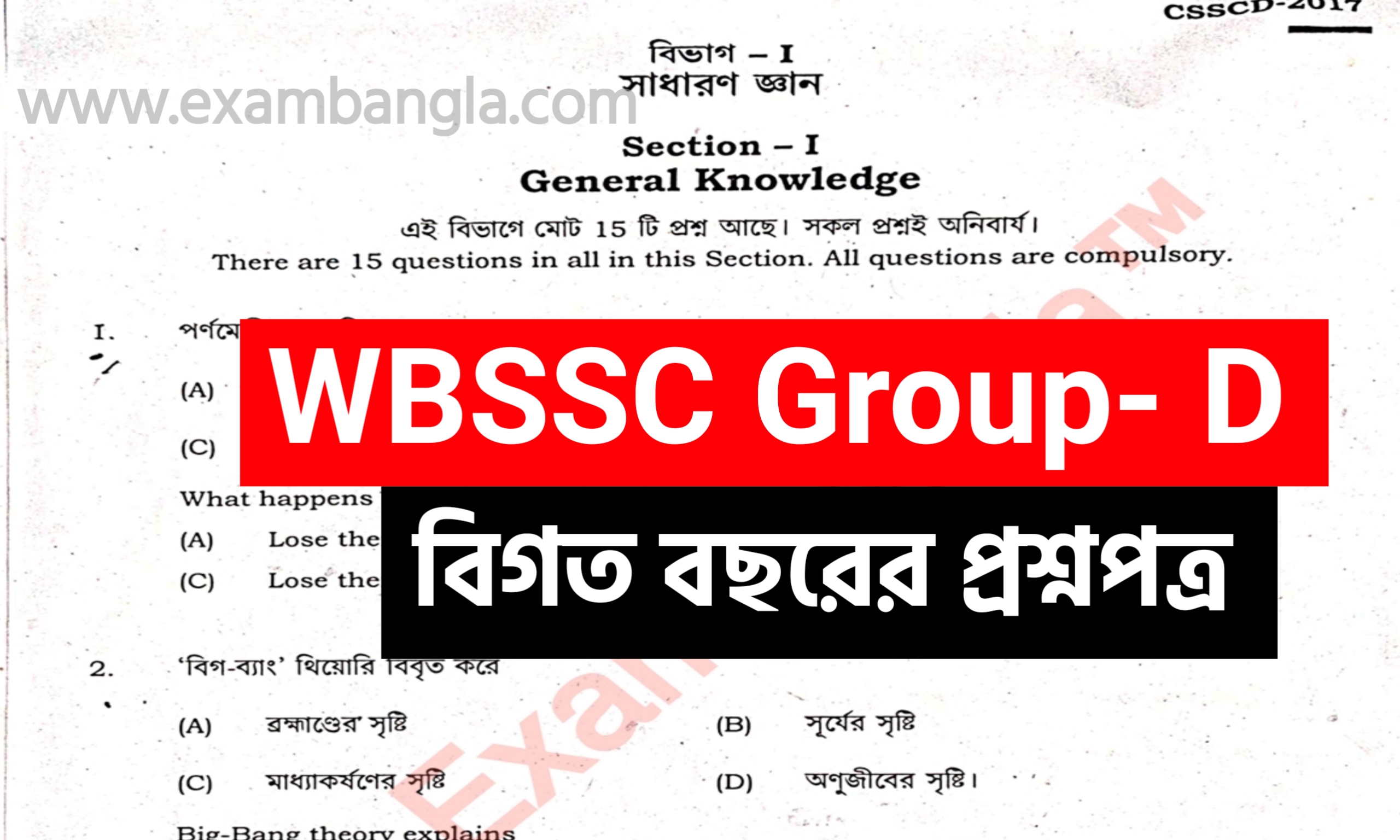 West Bengal Police Sub Inspector Previous Year Question Paper- নমস্কার, Exam Bangla ‘র সমস্ত পাঠকদের ...